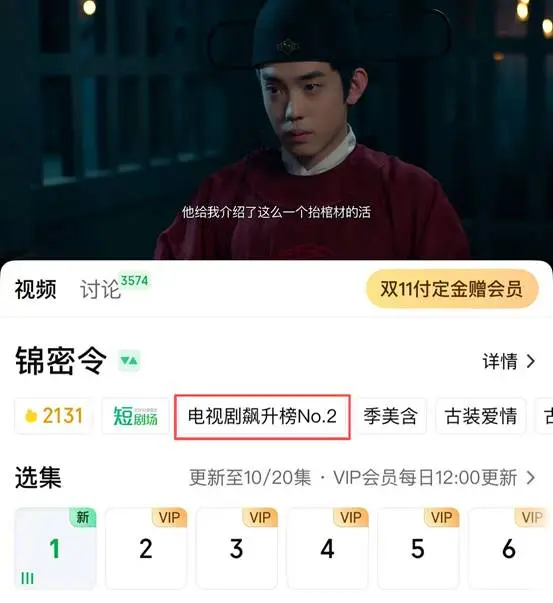 不过,还没等到这两部剧,倒是奇异果的新剧《锦密令》抢先播出了,首播20分钟就拿下飙升榜第二,热度相当在线。