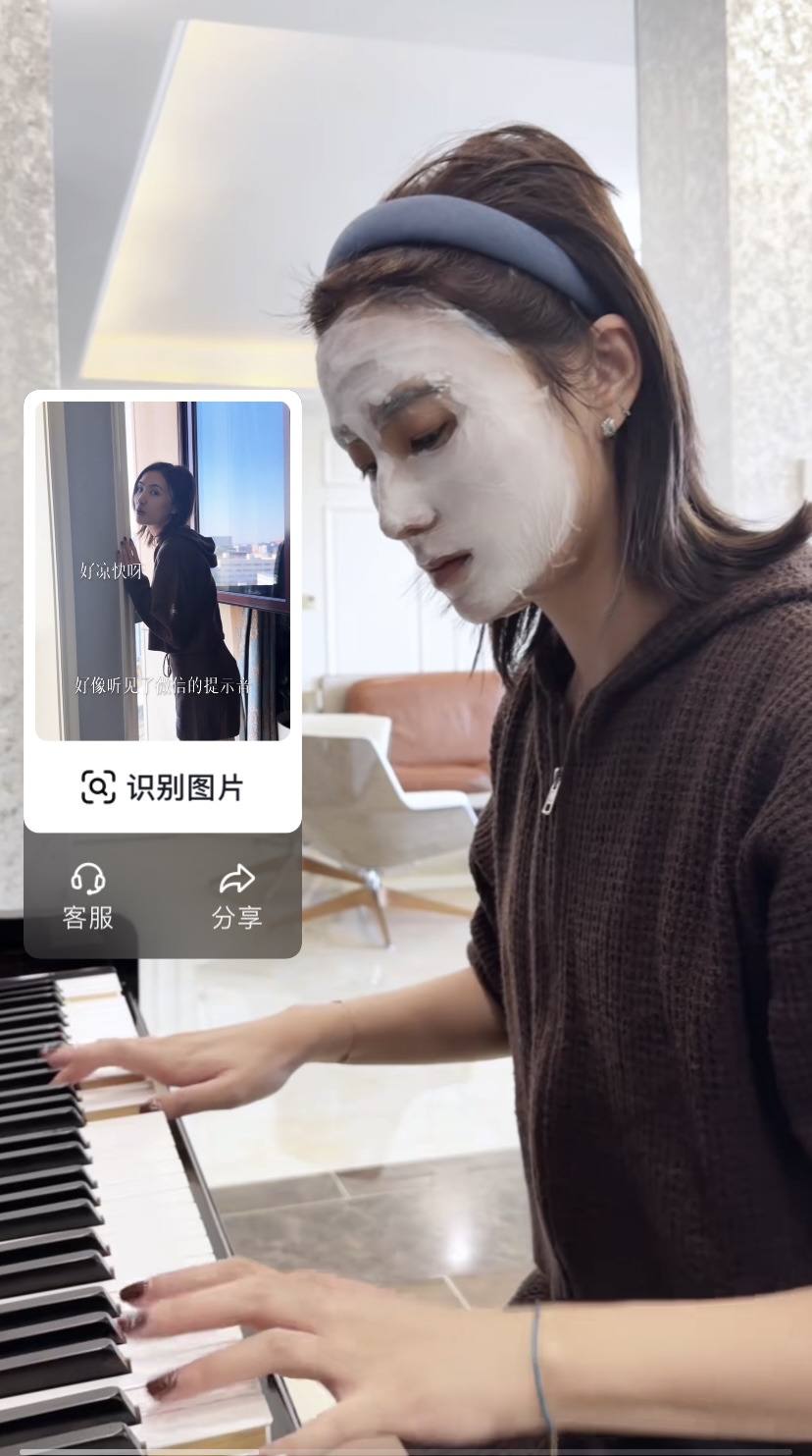 敷着面膜、弹一首钢琴曲,大概这才是海哈金喜该有的生活吧。终于在跟李亚鹏离婚后,过上了美好生活。